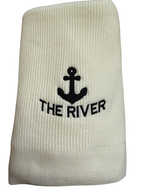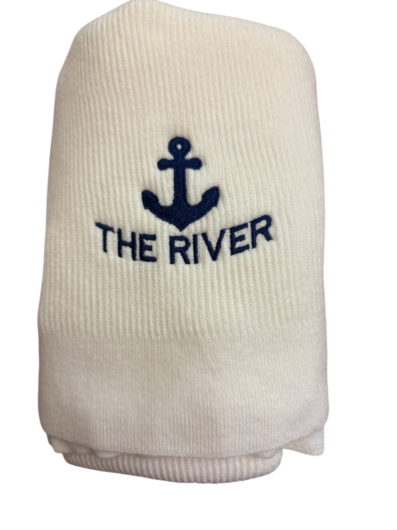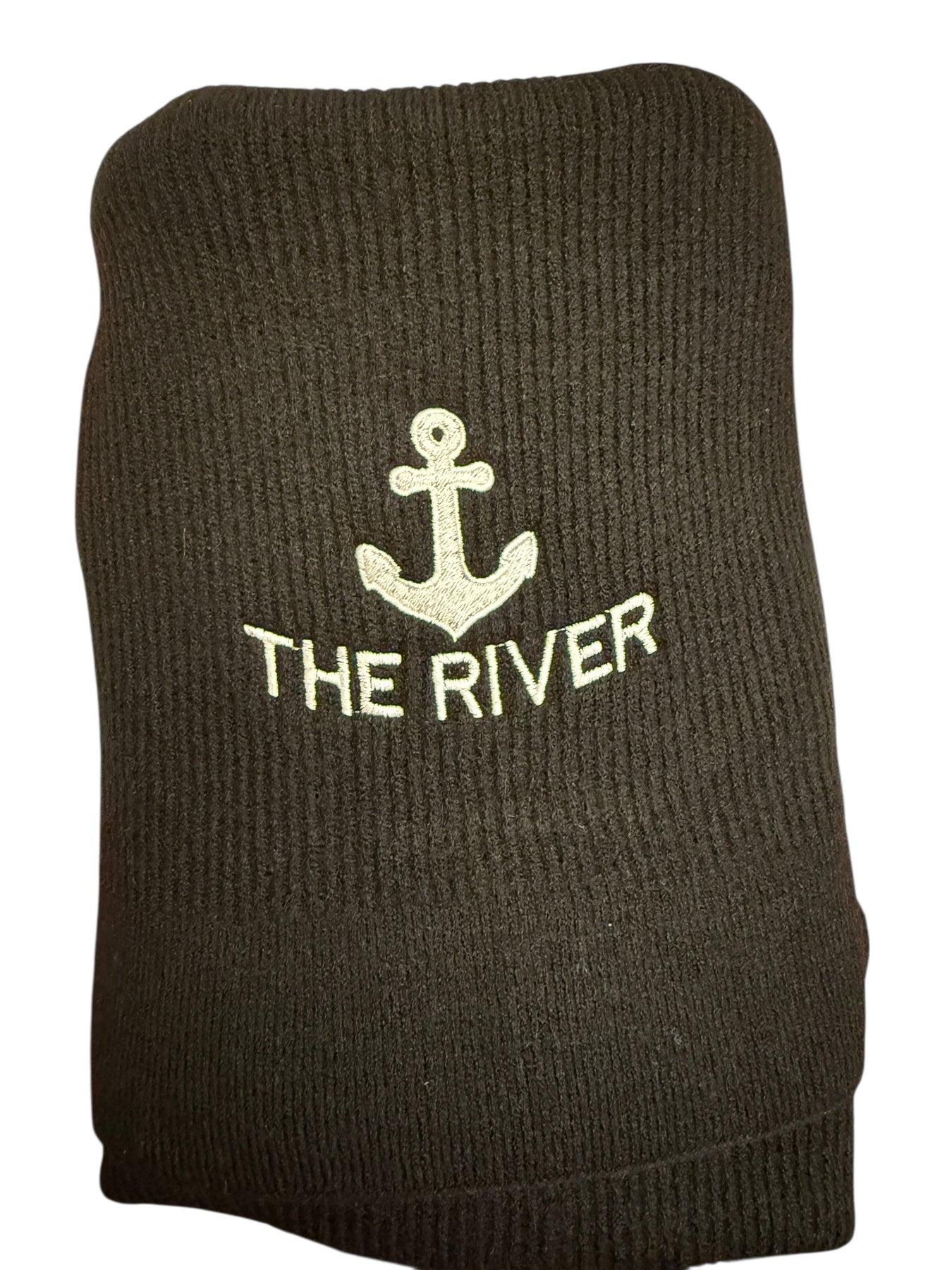 All NEW - we now offer a solid ribbed oblong CC scarf that is great!  This rubber patch is perfectly on trend!  50% Viscose 30% polyester 20% Nylon Measures: 78.5" in. L x 15.5" in. W